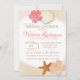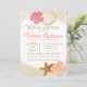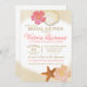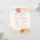 Bonito corais tropicais e pêssego Flores de Hibiscus, estrelas-do-mar e conchas chás de panela de praia com texto de coral e fontes elegantes.