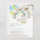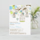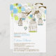 Ótima ilustração de pássaros verdes e azuis carreosos e variedade de flores com duas aves amadas tocadas em uma árvore com corda cardíaca balançante. Este convite é perfeito para as festas de primavera, verão e até inverno. Este convite está disponível em várias cores.