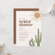 Convide amigos e família para comemorar a noiva a estar com este chá de panela, apresentando cactos e sol aquoso em cores quentes.