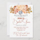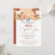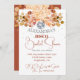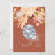 Marque a cena de uma comemoração temática do Disco. Laranja queimado é a cor de fundo para este design de Chá de panela personalizado elegante de bola Disco floral. As manchas de prata também estão no design. Altere facilmente as informações para o seu próprio convite personalizado. design de casamento chá de panela.