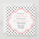 Convites de chá de panela bonito e elegantes, pretas e brancas, com um toque de rosa macio.