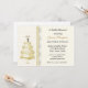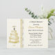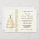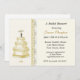 Um chá de panela com bolo de ouro bonito, com noiva e talento, com guarda-chuva sobre fundo. Fronteira lateral de margaridas e arcos.