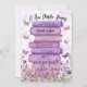 Cinto-de-galinha-de-galeria-branca design com uma pilha de livros pintada a aquarelas, flores silvestres rosa e roxas, e borboletas.
