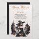 Incêndio em uma noite de mulheres enfeitiçadas com nosso Chá de panela temático de Halloween inspirado em vintage. Este convite com tema gótico apresenta uma bruxa alarmante numa fantasia provocadora, colocada contra um pano de fundo de mansões estranhas. Perfeito para chás de panela sofisticados e misteriosos.