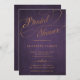 Convite Chá de panela de caligrafia de ouro roxo em folha