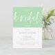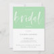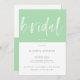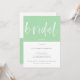 Chá de panela moderno minimalista em verde e branco de horta de duas tonalidades com Script de Caligrafia de Pincel de perder. Personalize facilmente este Modelo de Convite Bridal Brunch com o nome escolhido e mude o texto para ajustado do seu evento como Bridal Brunch, Chá de panela, Roubo de Brida etc. Um Convite para Chás de casamento super versátil e moderno com um fundo verde e branco de menta de bloco de cor (a cor pode ser alterada se quiser!).