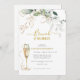 Beleza e diversão com este convite para o almoço de champanhe brinde e Chá de panela borbulhante desenhado com galhos de uísque e eucalipto moles de folhas de ouro douradas. Personalize facilmente com o nome da noiva e outras informações importantes.