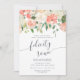 O chá de panela floral elegante e moderno apresenta um buquê de rosas de aquarela pastel macia, peonias e híbridos em tons de pêssego e creme, com folhas botânicas verdes e peludas e eucalipto. Personalize com os detalhes do seu chá de panela em elegantes enfumaçados com letras azuis acentuadas com caligrafia de estilo manuscrito.