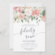 O chá de panela floral elegante e moderno apresenta um buquê de rosas de aquarela pastel macia, peonias e híbridos em tons de rosa-pincel, pêssego e creme, com folhas botânicas verdes e escamosas e eucalipto. Personalize com os detalhes do seu chá de panela em elegantes enfumaçados com letras azuis acentuadas com caligrafia de estilo manuscrito.