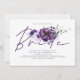 Flores roxas escuras e leves convites de chá de panela "chá a noiva"