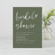 Este chá de panela de guião verde-oliva minimalista é a forma perfeita de convidar convidados a comemorar os próximos núpcias da noiva. O convite apresenta um design elegante e na moda, com fundo verde-oliva profundo e um texto elegante para caligrafia em branco. A caligrafia adiciona um toque de sofisticação ao convite e dá o tom para um chá de panela de classe e na moda. O convite é impresso em estoque de cartão de alta qualidade e pode ser personalizado com o nome, data, hora e local da noiva do evento. É uma maneira fácil e conveniente de convidar convidados para uma celebração memorável de amor e amizade.