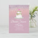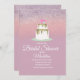 Estes convites elegantes apresentam falso brilho e bolo de casamento de duas camadas