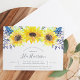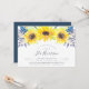 O chá de panela floral Chic do País apresenta uma borda superior de girassóis de cor d'água, minúsculos botões azuis marinhos e folhagem verde. Personalize com os detalhes do seu chá de panela no moderno roteiro escrito à mão e nas letras serif tradicionais. Convites de chá de panela invertem para o rico porto azul.