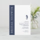 Esta elegante suíte de náutica apresenta estilo náutico clássico com um olhar limpo e minimalista. Ondas estilísticas em tons de aqua a azul marinho e uma ilustração do cavalo marinho fornecem sotaques únicos. Um layout assimétrico dá a este Chá de panela de casamento uma surpreendente reviravolta moderna. Perfeito para casamentos de iates, barco, praia ou destino de verão. Procure ID836 para ver este conjunto completo e outros com sotaques de elementos marinhos alternativos.