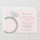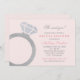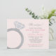 Os convites de chá de panela de casamento modernos e na moda "Ela disse sim!" apresentam um design de noivado de platina de diamante com um brilho brilhante e um bonito esquema de cor rosa pastel e cinza de platina que pode ser personalizado. Personalize o texto do seu evento.