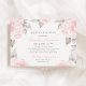 Design de chá de panela de casamento elegante e romântico apresenta informações personalizadas de blush e cinza de pérola enquadradas por uma borda de rosas cor-de-rosa macia com folhas verdes / cinzas. Flores têm uma bela aparência pintada de aquarela.
