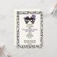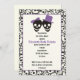 Crânios elegantes chá de panela de casamento roxo do Halloween, com noiva de casal do crânio preto e noiva sobre fundo de marfim e borda de padrão de crânio. O noivo veste um chapéu roxo e a noiva um arco roxo. Quer ajuda ou um esquema de cores diferente? Basta clicar no botão Contato sob o produto e solicitar!