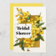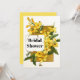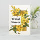 Primavera floral de jasmim amarelo-vivo, chá de panela de dois lados. Um belo design floral que mostra uma pintura vintage de um galho jasmim amarelo com uma anotação fixa que segura o texto "Chá de panela" na frente enquanto seu texto é colocado no verso de um quadro branco fora com uma borda amarela.