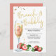 Chá de panela de Brunch e Bubble - perfeito para uma festa de café ou chá de jardim de verão. O design apresenta ilustrações aquarelas de morangos, um copo de champanhe e elegante cartaz manual em ouro. O modelo está pronto para você personalizar todos os detalhes do convite para sua própria ocasião. Procure na nossa loja itens de coordenação.