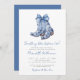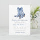 Algo Azul Antes De Eu Fazer! Chá de panela Elegante de Boot Cowboy. Celebrar a noiva-a-ser com um toque de charme e sofisticação do país. Este convite apresenta um par de botas de cowboy azuis rico no topo, adornada com um arco de aquarela grande. As botas são decoradas com um padrão floral ou inspirado na chinoiserie, acrescentando uma reviravolta elegante ao tema rústico. A frase "Algo azul antes de mim!" é escrita em uma na moda mix de fontes azuis escuras e cinzas, combinando guião manuscrito e tipografia serif clássica para um sentimento polido e moderno. Perfeito para chás de panela com tema de país ou vaqueiro, este design é versátil o suficiente para qualquer cenário, desde comemorações de celeiro rústico a encontros acolhedores. A parte de trás do cartão apresenta um fundo azul escuro rico, que pode ser personalizado para corresponder ao esquema de cores do seu evento. Totalmente personalizável, você pode ajustar o texto, as fontes e as cores para refletir o estilo exclusivo da noiva. Disponível como um cartão impresso ou um arquivo digital baixável, este encantador convite é uma maneira deliciosa de dar o tom para sua celebração especial.