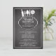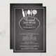 chá de panela de cozinha moderno divertido com utensílios de cozinha em um fundo de quadro negro contemporâneo. Sacudir nosso convite para ver uma correspondência de volta para um toque especial extra. Visite nosso compro para ver este chá de panela da cozinha contemporânea, na moda e chic em uma variedade de opções de cores.