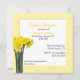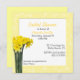 chá de panela maravilhoso, com gráficos de um quadro amarelo e branco, em torno de uma área de texto branca. Uma bonito fotografia de daffodilos amarelos decoram o lado inferior esquerdo do convite. Texto em cinzas amarelas e escuras está pronto para personalizar para seu evento noivo. O convite adorável que a noiva vai gostar para sempre.