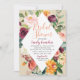 Este elegante design de chá de panela de casamento no estilo rústico apresenta uma queda na fronteira floral de cor d'água com rosas, dahlias, flores de pénia e verde em uma linda paleta de outono de vermelho vermelho-lenhoso, amarelo-ouro, laranja-pêssego, rosa-pincel e tons de verde. Personalize o texto personalizado laranja, burgundy e cinza escura com o nome, o evento e as informações do registro da noiva. Inclui uma cor de fundo bege neutra que pode ser modificada. Um fundo vermelho burguês com aparência texturizada veste-se na parte de trás do cartão.