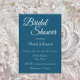 Estilo simples, chá de panela que apresenta um fundo de cor azul-tênue e tentilidade, juntamente com o nome da futura noiva, o tempo e o local do evento de festa, o contato, etc., impresso em letras brancas e estilizadas. Personalize o seu convite substituindo o texto pelas suas próprias informações de chá de panela. Selecione o estilo e a quantidade do seu papel de convite.