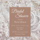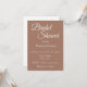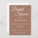 Estilo simples, chá de panela que apresenta um fundo cor marrom mocha de tendência junto com o nome e a hora e o local do evento da futura noiva, contato, etc., impresso em letras brancas e estilizadas. Personalize o seu convite substituindo o texto pelas suas próprias informações de chá de panela. Selecione o estilo e a quantidade do seu papel de convite.