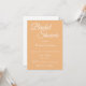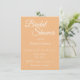 Estilo simples, chá de panela que apresenta uma tendência, fundo cor de pêssego junto com o nome da futura noiva e o horário e local do evento da festa, contato etc., impressos em caracteres brancos estilizados. Personalize o seu convite substituindo o texto pelas suas próprias informações de chá de panela. Selecione o estilo e a quantidade do seu papel de convite.