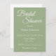 Estilo simples, chá de panela que apresenta uma tela de fundo verde de cor inteligente, bem como o nome da futura noiva, o tempo e o local do evento de festa, o contato, etc., impressos em letras brancas e estilizadas. Personalize o seu convite substituindo o texto pelas suas próprias informações de chá de panela. Selecione o estilo e a quantidade do seu papel de convite.
