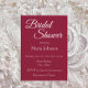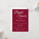 Estilo simples, chá de panela que apresenta um fundo de cor vermelho de cranberry, junto com o nome da futura noiva e o horário e local do evento de festa, contato, etc., impresso em letras brancas e estilizadas. Personalize o seu convite substituindo o texto pelas suas próprias informações de chá de panela. Selecione o estilo e a quantidade do seu papel de convite.