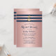 Convites de chá de panela de faixas azuis de Marinho náutico com âncora Dourada.