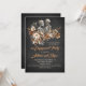 Um convite para a sua festa de noivado de Halloween! Os lindos casais florais e esqueletos são os toques perfeitos para você, assustador dia especial.