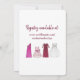 Os convites apresentam um marcador original ilustrativo de uma fileira de dama de honra, menina de flor, mãe da noiva e vestidos de noiva. Ideal para uma celebração de festa de solteira ou chá de panela. Apenas personalize com suas informações de evento. Não vê o que está procurando? Precisa de ajuda para a personalização? Entre em contato com Rebecca para ter algo projetado só para você.