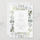 Este design apresenta flores azuis empoeiradas e folhas de eucalipto em tons de verde.