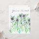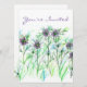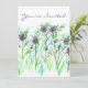 Um convite de festas bonito decorado com flores roxas do "Amor em uma Névoa" desenhadas em caneta preta e tinta com aquarela em tons coloridos de verde e azul. Você pode personalizar o convite para ajustado das suas necessidades.