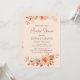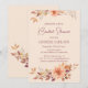 O convite apresenta um fundo cor de laranja claro e quente adornado com buquês de folhas de outono e flores em tons ricos de laranja, marrom, burgundy e amarelo. A elegante design captura a essência da temporada de outono. O texto editável permite personalizar todos os detalhes para ajustado perfeitamente o evento. Quer você esteja planejando um chá de panela ou outra ocasião especial como um chá de fraldas, este convite define o tom perfeito para uma celebração memorável.