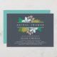 Aloha! Nosso chá de panela chic ilha apresenta flores tropicais e verde espreitando atrás do "chá de panela" em letras elegantes. Personalize com seu chá de panela e detalhes do registro abaixo. Cartões à volta de aqua sólida.