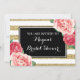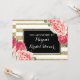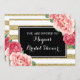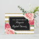 Convites de chá de panela personalizados em preto e branco com listras douradas e flores cor-de-água cor-de-rosa, por favor note que o ouro é apenas efeito fotográfico.