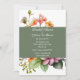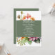 chá de panela bonito feito em branco, com flores silvestres coloridas. Uma banda verde musculosa, atravessa o centro, do convite, e serve como área de texto. Personalize o texto branco personalizado para atender às suas necessidades de evento.