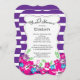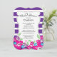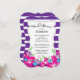 Comece seu chá de panela tropical hawaiano com nossas impressionantes flores de hibisco rosa e convites de chá de panela de flores de hibisco roxos. Nosso chá de panela na moda tropical apresenta um quadro de rico chic e é colocado em um fundo escuro roxo e branco de distribuição para realmente fazer elementos de convite pop e tem uma coordenação de volta. Perfeito para um chá de casamento de praia contemporâneo, chá de panela de destino, chá de panela de verão, chá de panela de primavera ou um chá de panela de luau.