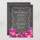 Comece seu chá de panela hawaiano tropical com nossas impressionantes flores de hibisco rosa e flores de hibisco roxas e convites de chá de panela de flores de hibisco roxas. Nosso chá de panela na moda tropical apresenta um quadro de rico chic e é colocado em um fundo moderno de quadro chanfro para realmente fazer elementos de convite pop e tem uma coordenação de volta. Perfeito para um chá de casamento de praia contemporânea, chá de panela de destino, chá de panela de verão, chá de panela de primavera ou chá de panela de luau.