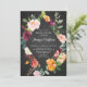 Convide convidados para o seu evento com este chá de panela de chalkboard floral rústico. Apresenta uma moldura de diamante de cor d'água de rosas, peões e outras flores cor-de-rosa, roxo, laranja e escamoteada, com folhas de eucalipto e acentos verdes. Este convite floral elegante é perfeito para chás de panela de outono.