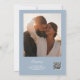 Este chá de panela elegante azul empoeirado de script pode ser personalizado com todas as suas informações de evento especial e código QR de foto e registro no verso. Projetado por Thisnotme©