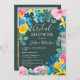 Chá de panela floral verde-russo de Verão com girassóis azuis, amarelos, pintados, rosas cor-de-rosa, eucalipto verde-sábio em verde-escuro editável. Perfeito para o verão, casamentos externos.