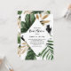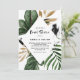 Convide familiares e amigos para o seu chá de panela com este convite personalizável. Este convite tropical apresenta ilustrações aquosas de folhas tropicais e plantas com folhas falsas de folha de ouro e acentuados de cor aquosa de pincel preto. Perfeito para chás de panela de verão e chá de panela.