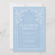 Delicado floresce branco entrelaçando para criar um belo quadro floral, abraçando a elegância eterno do amor. Chá de panela glamouroso misturando estética moderna com arte clássica nouveau. O quadro geométrico branco ornamentado num pano de fundo azul empoeirado evoca o drama e o romance. Sofisticados e distintos, deixam uma impressão duradoura. Junte-se a nós para uma celebração inesquecível com design cativante e detalhes elegantes. Com uma rotação moderna no art nouveau, esses convites exibem uma estrutura geométrica branca ornamentado e ornamentação intrincada. Os delicados detalhes acrescentam um ar de elegância e refinamento, complementando perfeitamente o design geral.