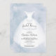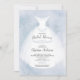 Chá de panela moderno de noiva com um lindo vestido branco de noiva colocado sobre um moderno fundo azul de cor d'água. Sacudir nosso convite de chá de vestimenta de chic e na moda para ver uma aquarela correspondente de volta para um toque especial extra. Convidar chá de panela contemporâneo para um chá de panela, chá de panela de verão, chá de panela de outono ou chá de panela de inverno. Visite nosso compro para ver esta design popular de noiva em várias cores.