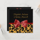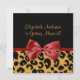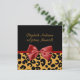 Um chá de panela de padrão de impressão preto-e-ouro de leopardo com um arco de fita vermelho-chic envolvido como um presente. Personalize adicionando o nome da noiva e as informações da parte.